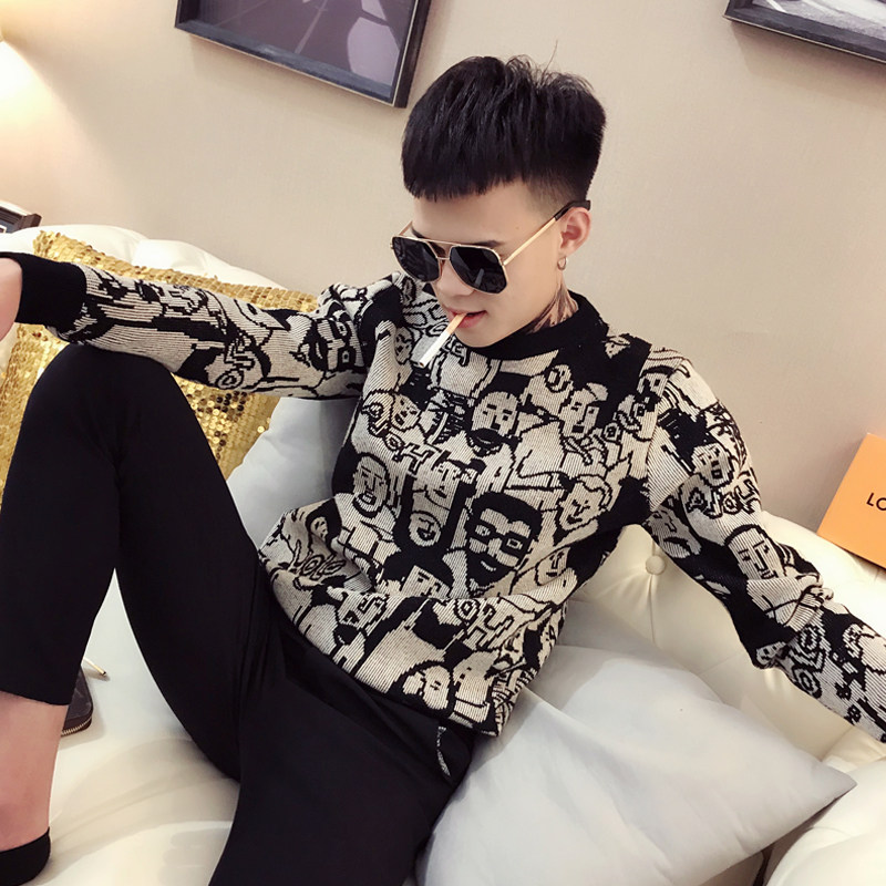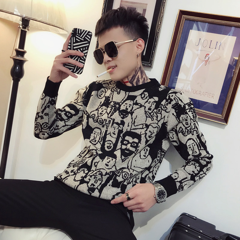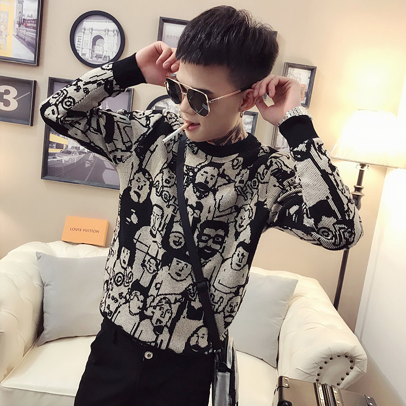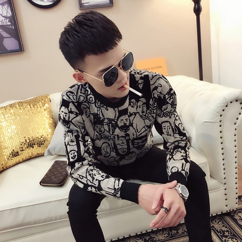 Sweater New 2020 Explosive Men's Knitted Sweater Autumn and Winter Korean Fashion Personality Joker Long Sleeve base shirt