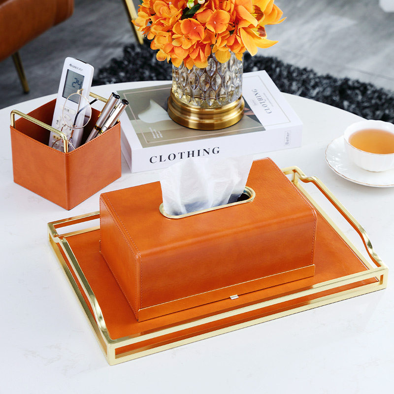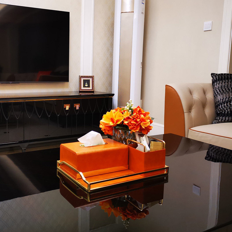 Sweet Orange Rectangular Tissue Box Sweet Orange Three-Piece Set Sweet Orange Four-Piece Set Sweet Orange Leather Storage Box Sweet Orange Rectangular Tray Glass Jar + Bouquet Leather Tissue Box Candlestick Pair Sweet Orange Leather Ashtray