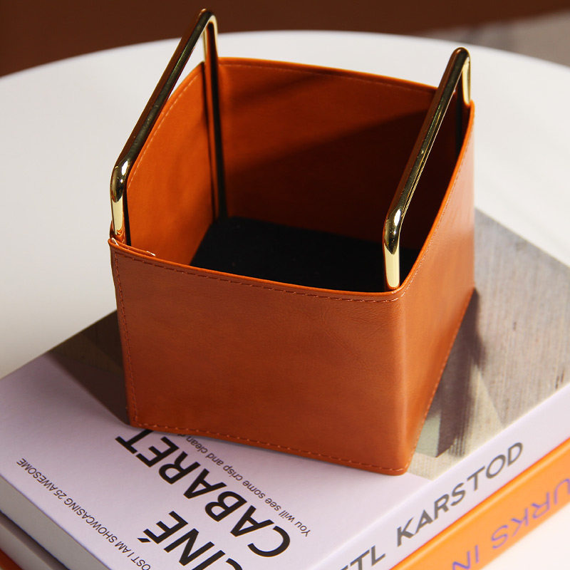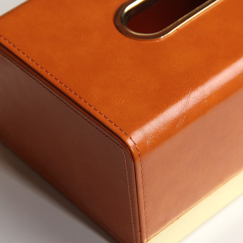 Creative light luxury leather tissue box Home living room modern simple American dining table coffee table high-grade orange draw box