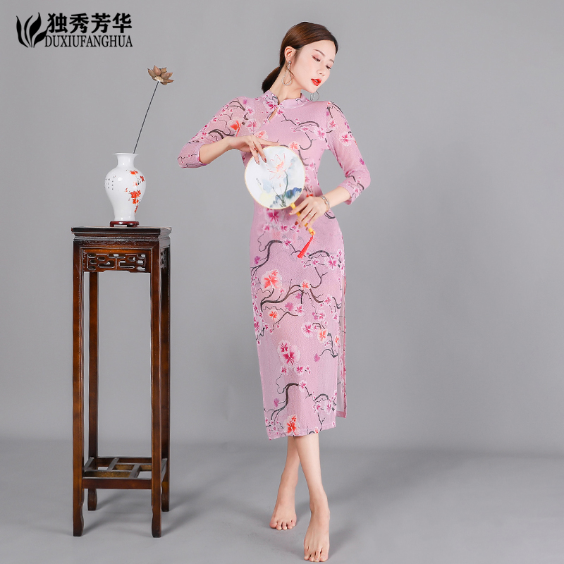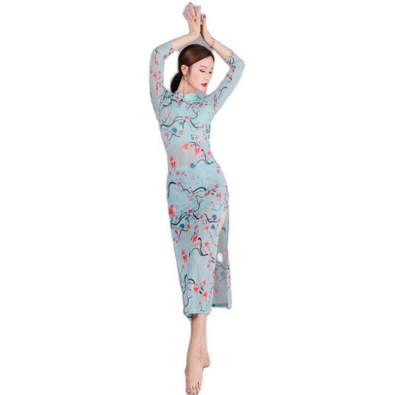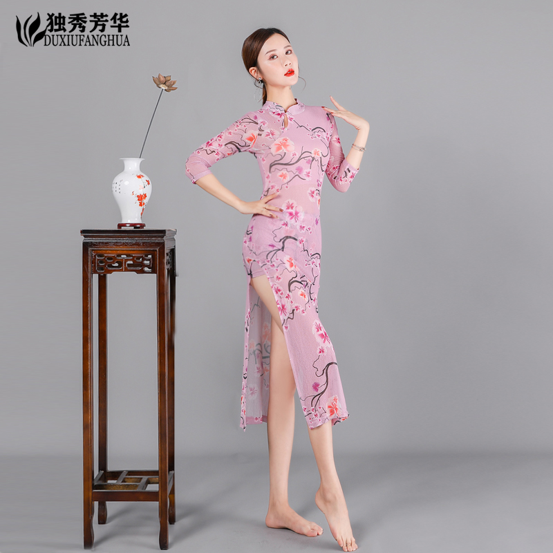 Classical Dance Martial Arts Female China Wind Improvement Qipao Elastic Mesh Yarn Multi-Love Breeder Dance Qipao Performance Clothing