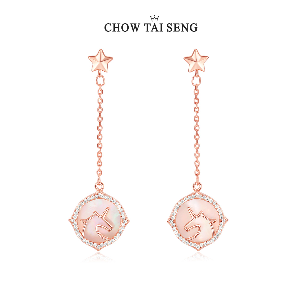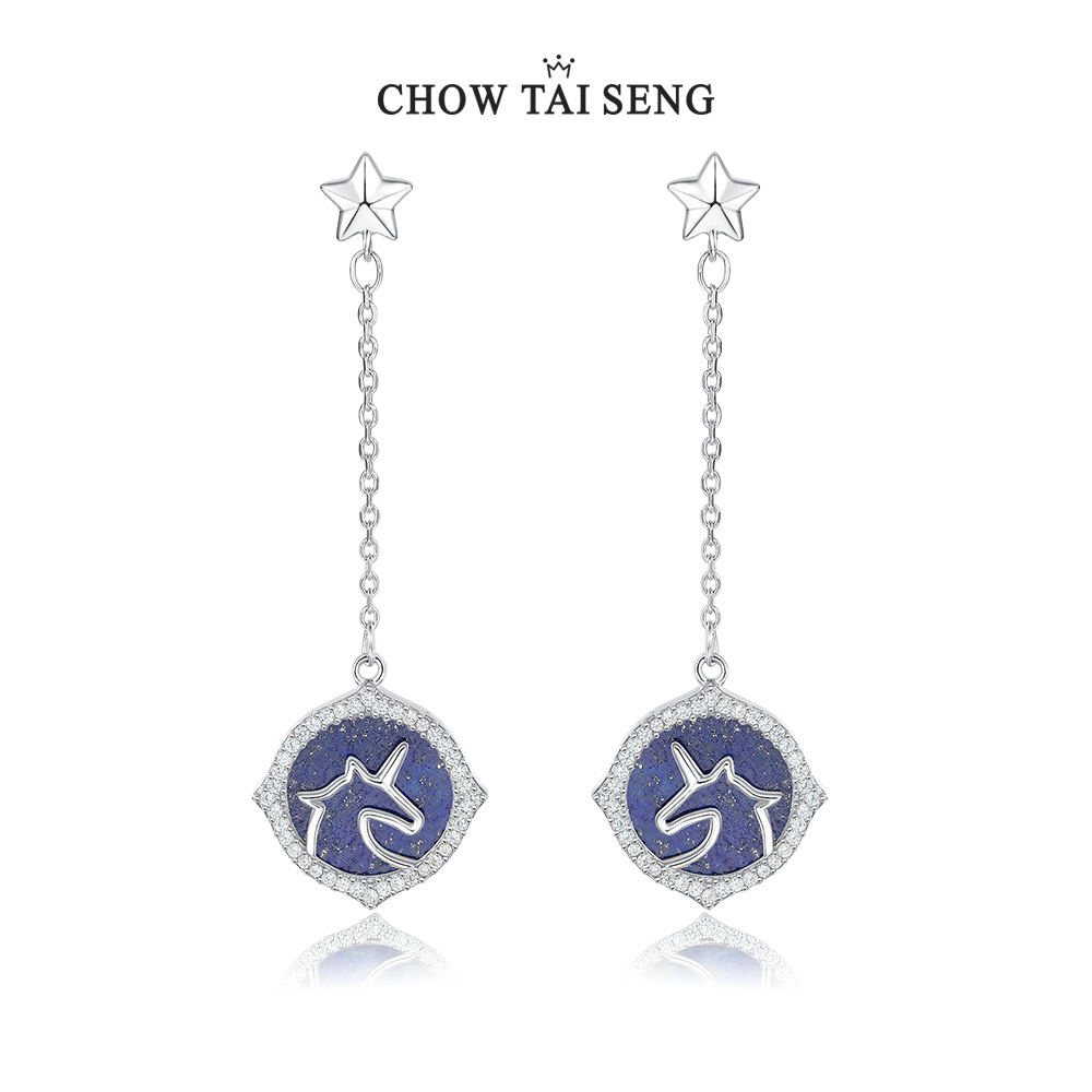 Zhou Shengsheng sterling silver earrings S925 unicorn ear needle Lapis lazuli ear chain Chuanbei mother earrings send girlfriend birthday gift