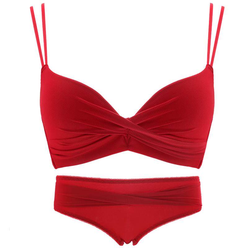 Big red underwear panty set zodiac year wedding bride no steel ring sexy bra gather ladies small bra