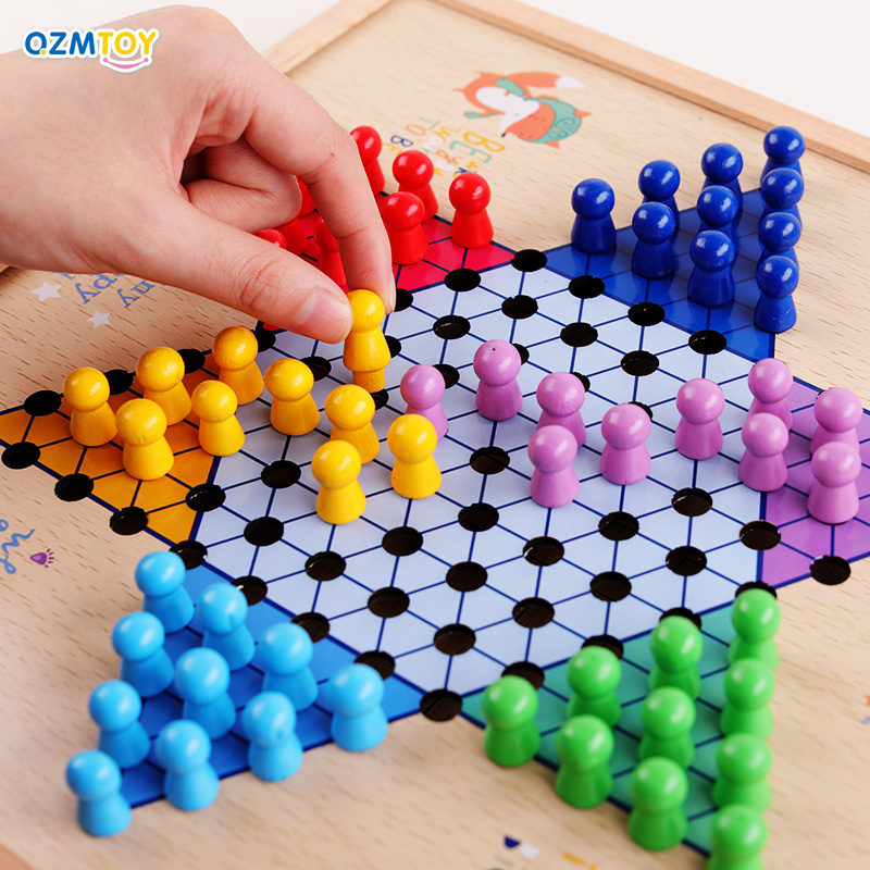 Flying Chess Checkers Five Chess Fighting Beast Chess Multifunction All-in-one Chessboard Children Puzzle Chess big All Wooden Toys-Taobao