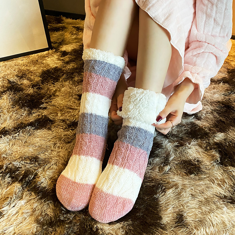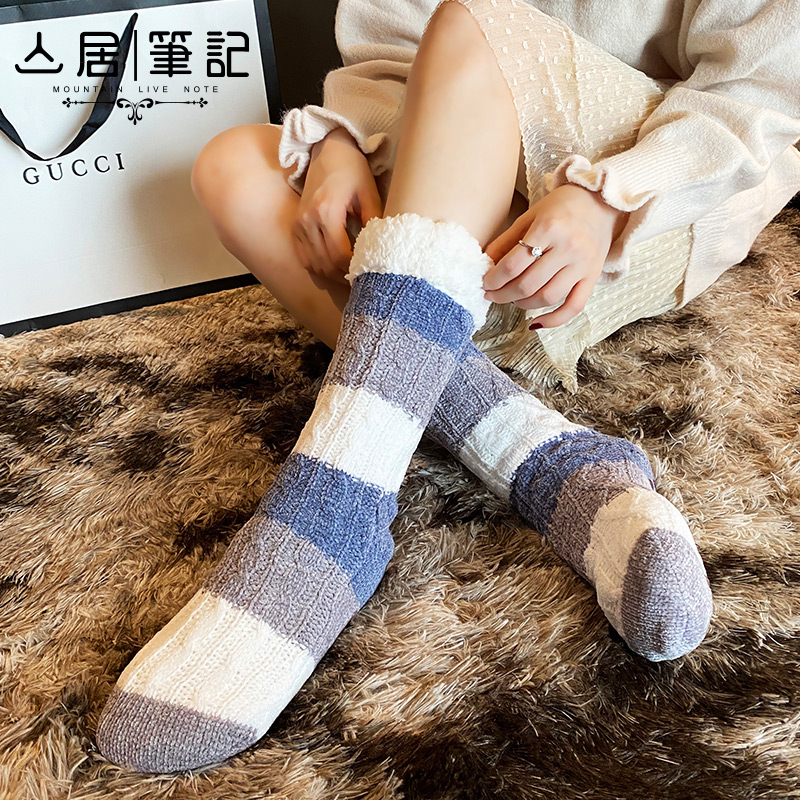 Mountain Residence Notes Flooring Socks Grown-up Sleep Socks Lamb Suede Socks Home Socks Women Midtubes Socks Autumn-winter Warm Thickening