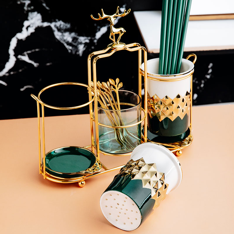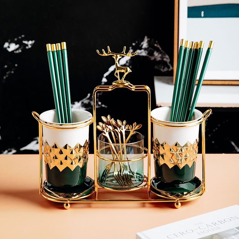 Sika Deer Gold Chopstick Holder-Double Glass Jar