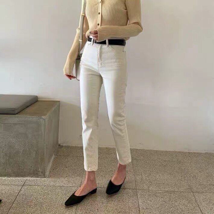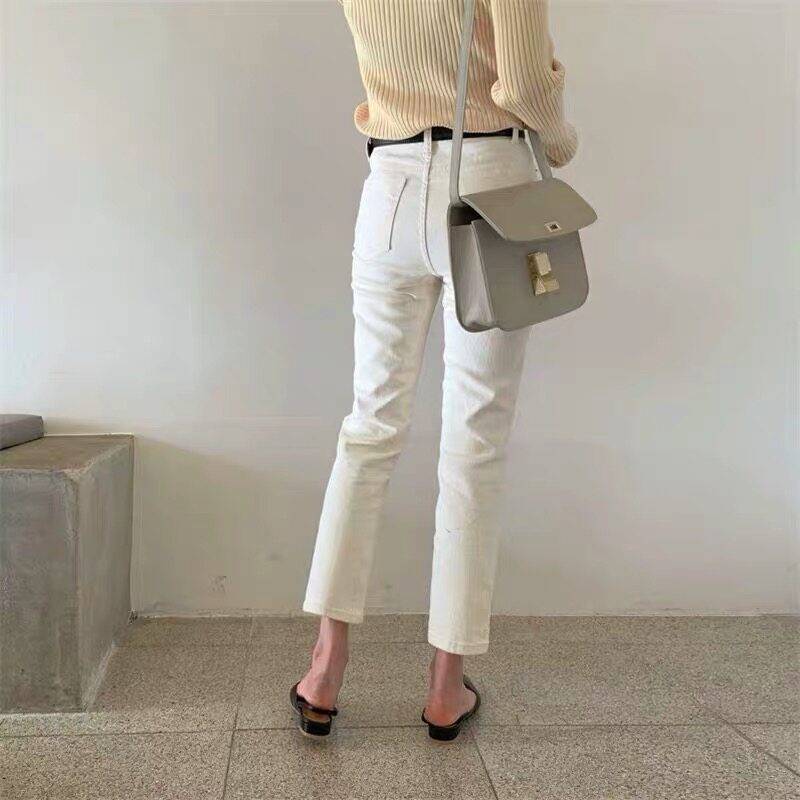Brin white jeans women's straight high waist thin slim 2021 spring and autumn new loose and versatile nine-point pants