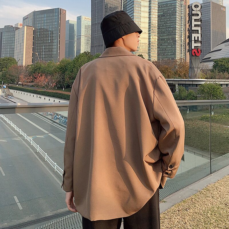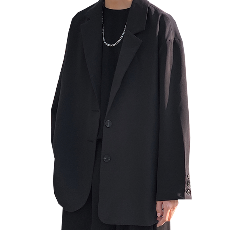 Spring and autumn Hong Kong style small suit men's jacket loose ins high-end sense large size casual ruffian handsome black suit jacket - Taobao
