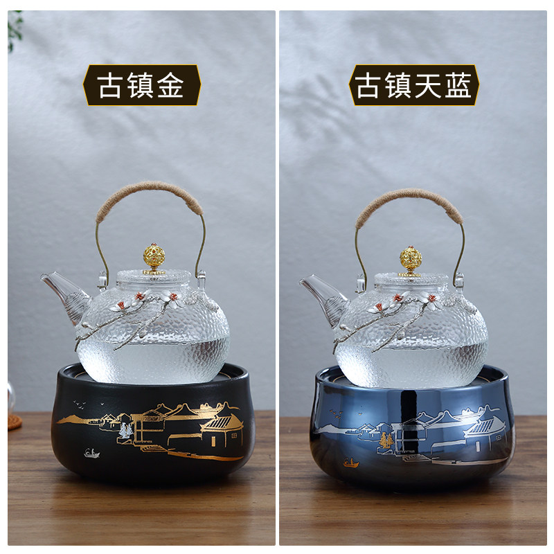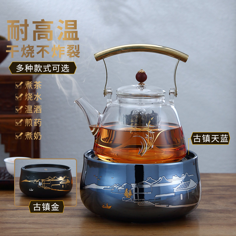 Pintaotang Ancient Town Black Crystal Furnace Tea Furnace Tea Boiler Glass Cooking Teapot Set Black Crystal Furnace Silent Tea Furnace Tea Boiler