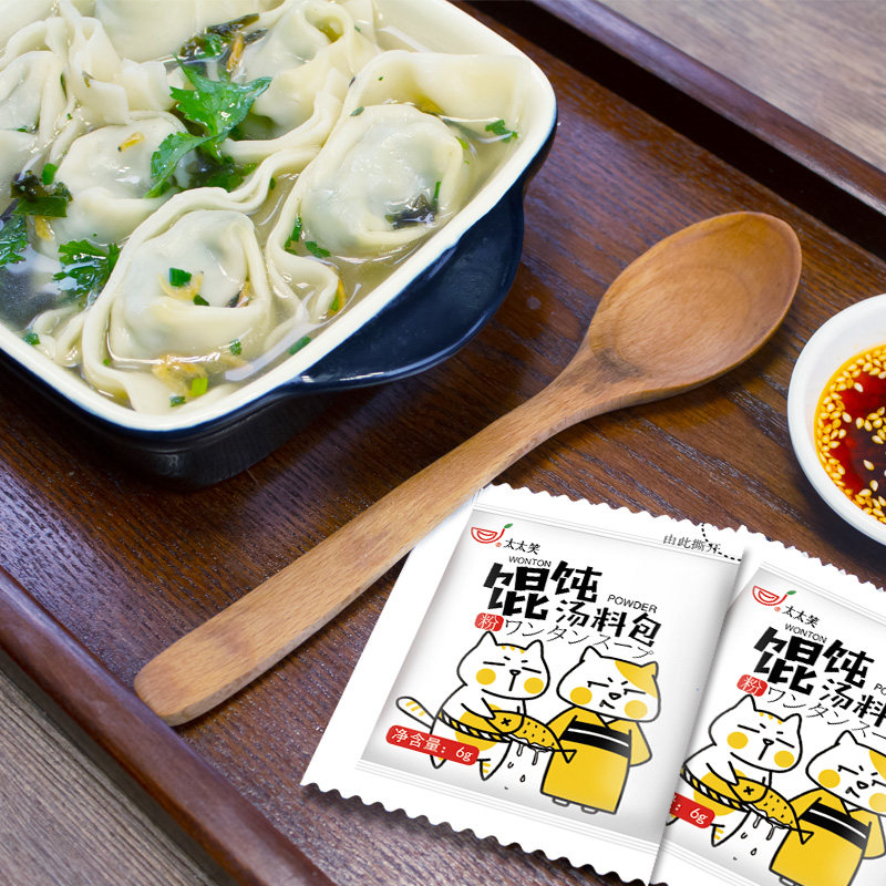 Wife Laughs Wonton Soup Stock Bag Bagged 20 Packs Purple Vegetable Shrimp Leather Household Commercial Dumplings Cloud Swallowed Noodle Wonton Sauce