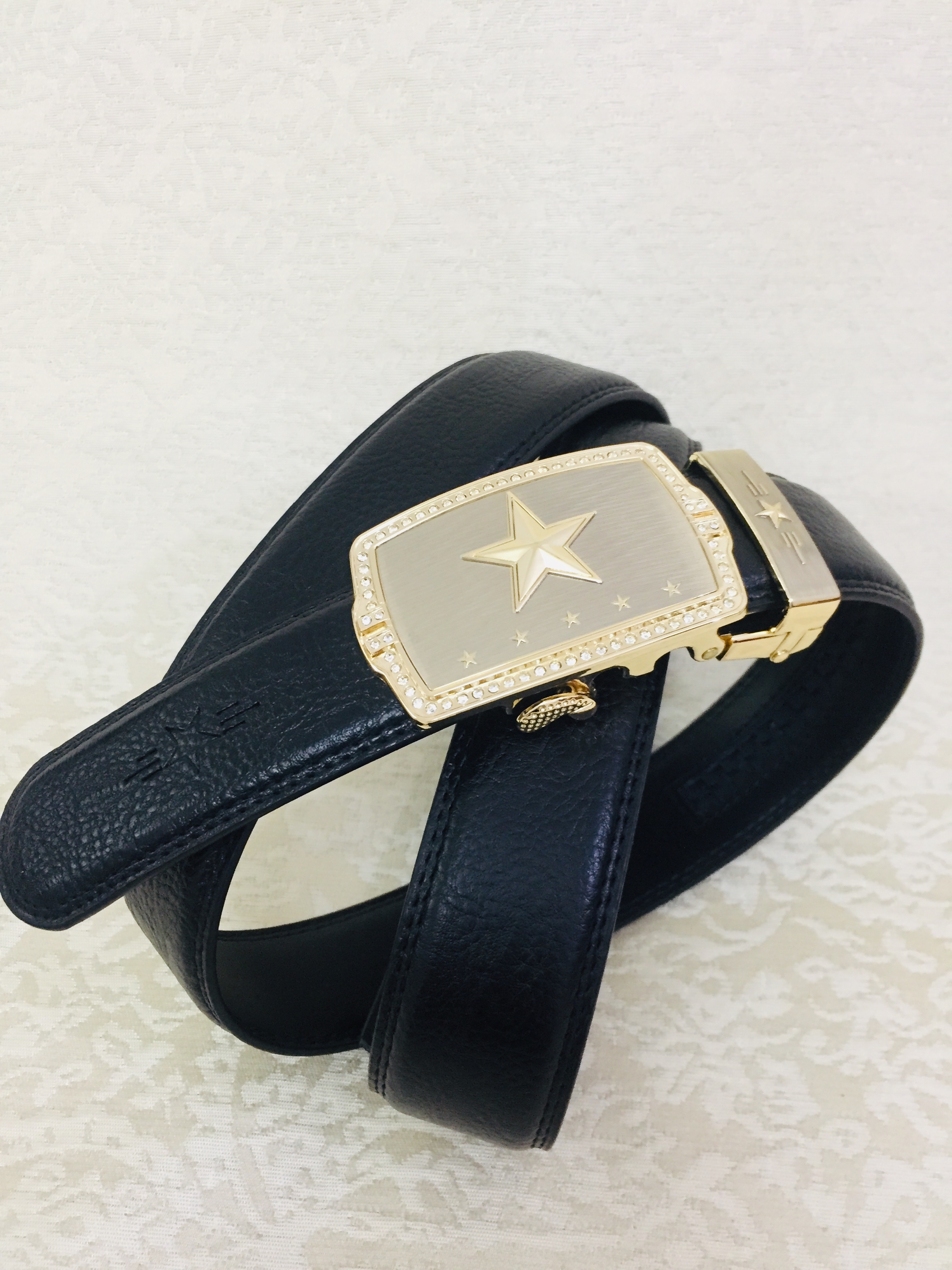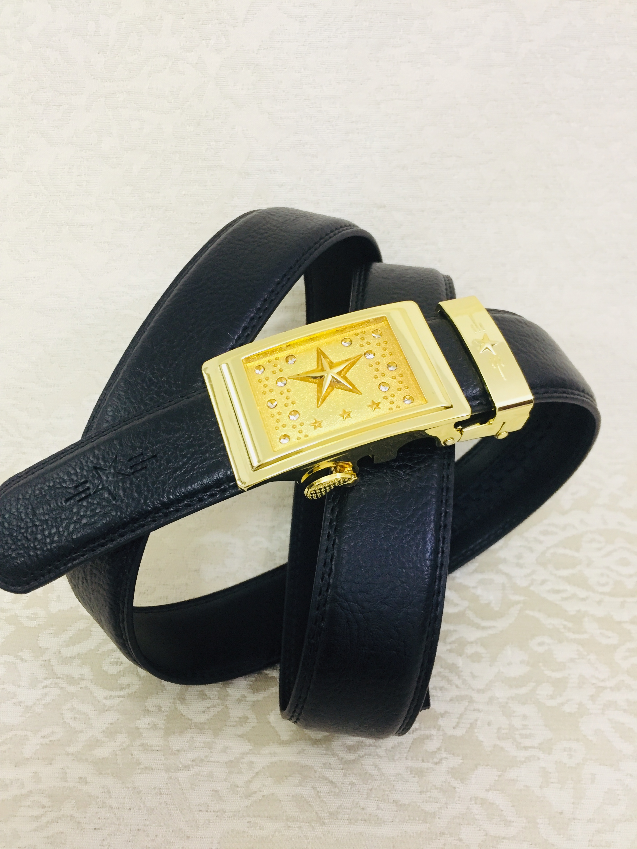 Private Custom Men Genuine Leather Belt Insert Drilling Five Star Belt Buckle Head Automatic Buckle 24K Gilded Leather Bull Leather Strap