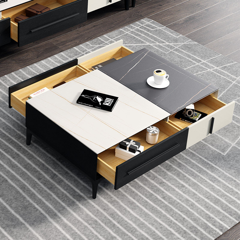 Slate coffee table TV cabinet combination set Nordic ins style modern minimalist small apartment living room solid wood long coffee table