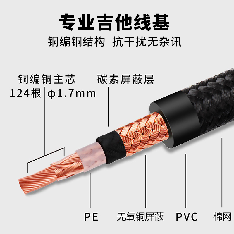 6 5mm Audio Wire Electric Guitar Noise Reduction Performance Folk Music Box Bass Trumpeter Audio Connection Power Amplifier Tuning Bench Electric Piano Speaker Sound Switching Line Microphone Microphone AV Adapter