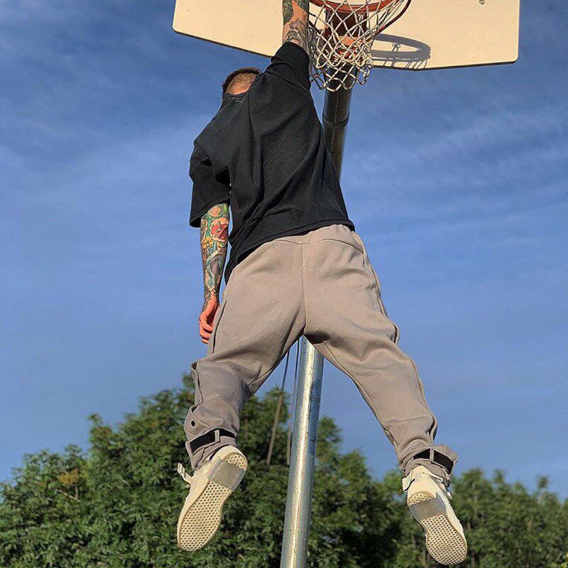 Fitness high street breasted trousers muscular man training basketball sports pants brothers casual all-match Velcro guard pants