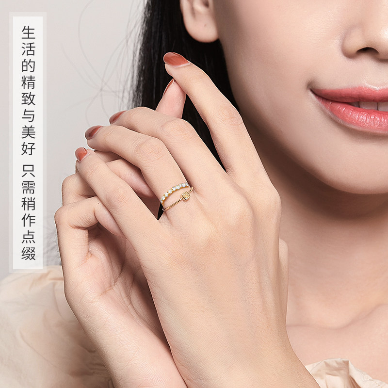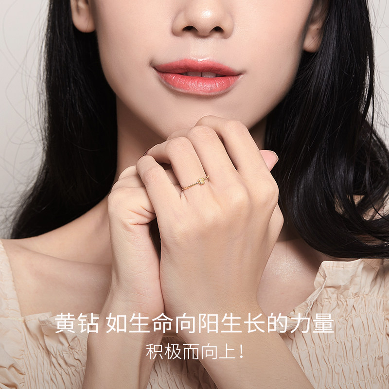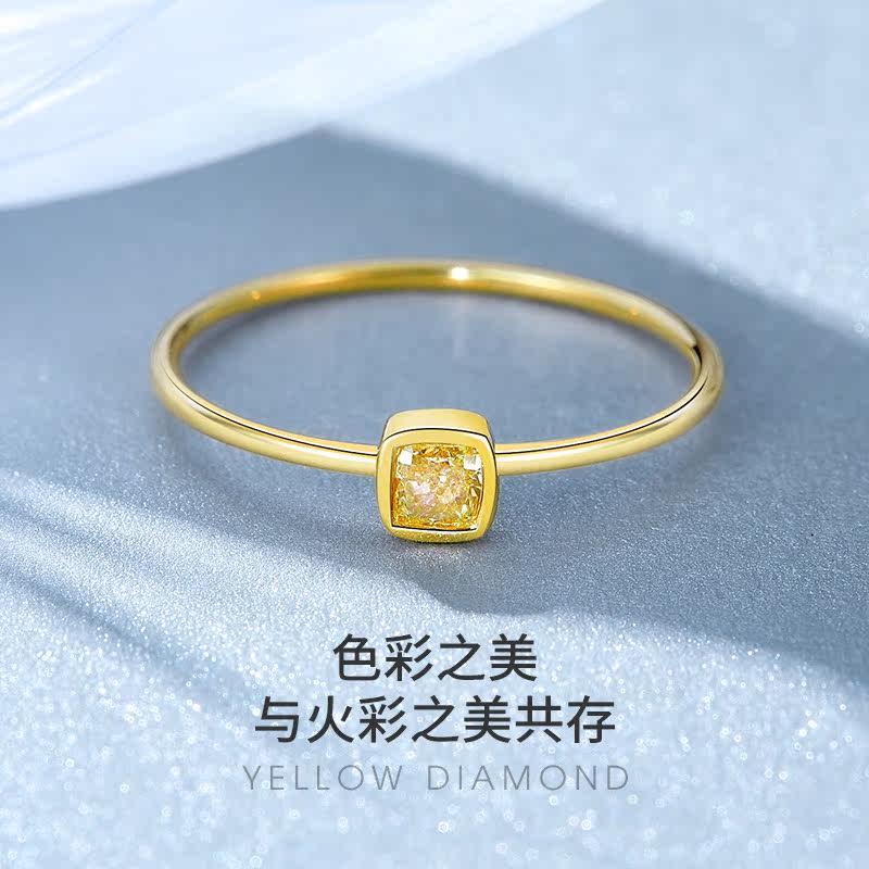 Hi diamond diamond ring Female yellow 18K gold diamond ring yellow diamond light luxury fancy diamond female ring fashion color gold brick ring new