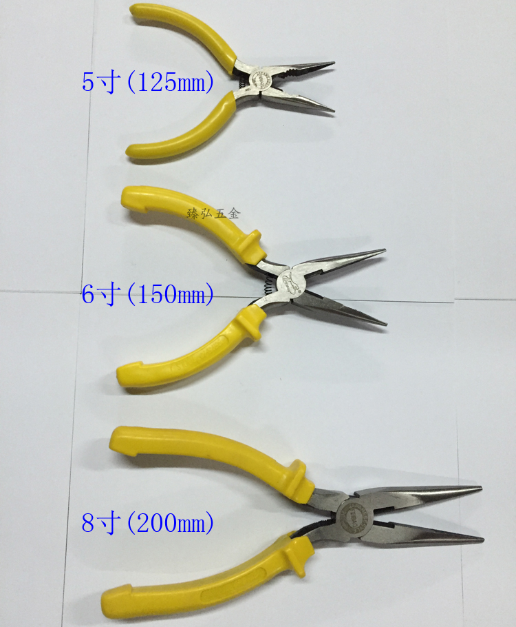 5-inch pointed pliers (with spring) 6-inch pliers (with spring) 8-inch pliers (with teeth without spring) 6-inch pliers (without spring) 8-inch pliers (without spring)