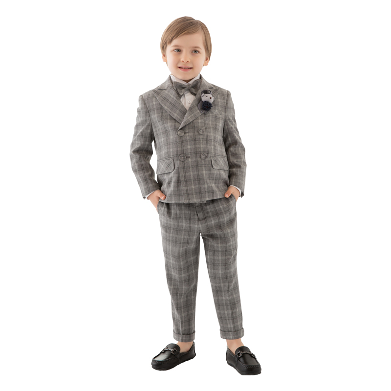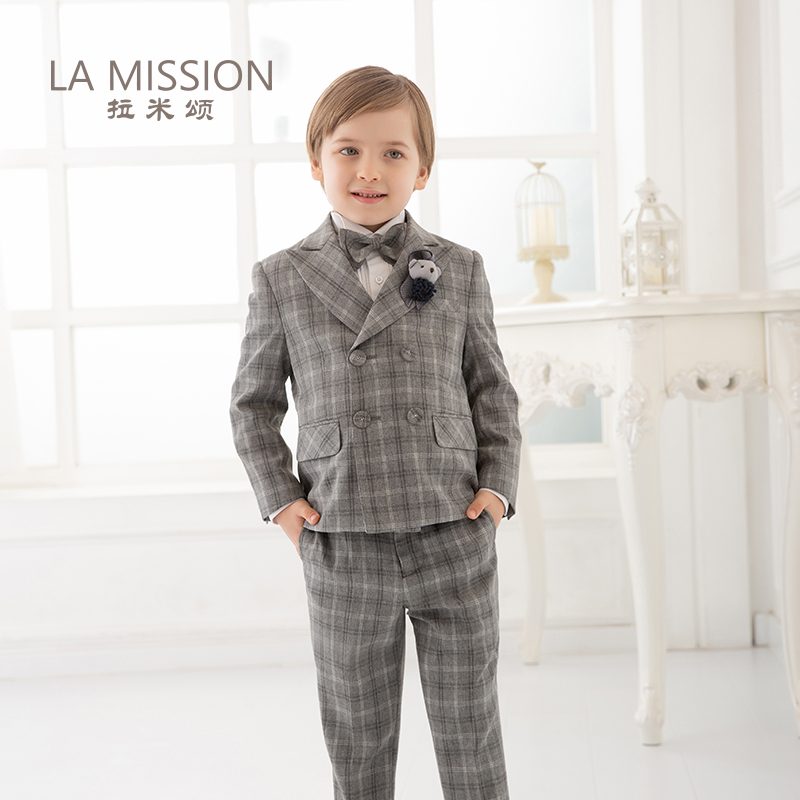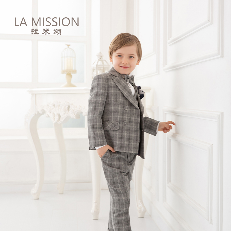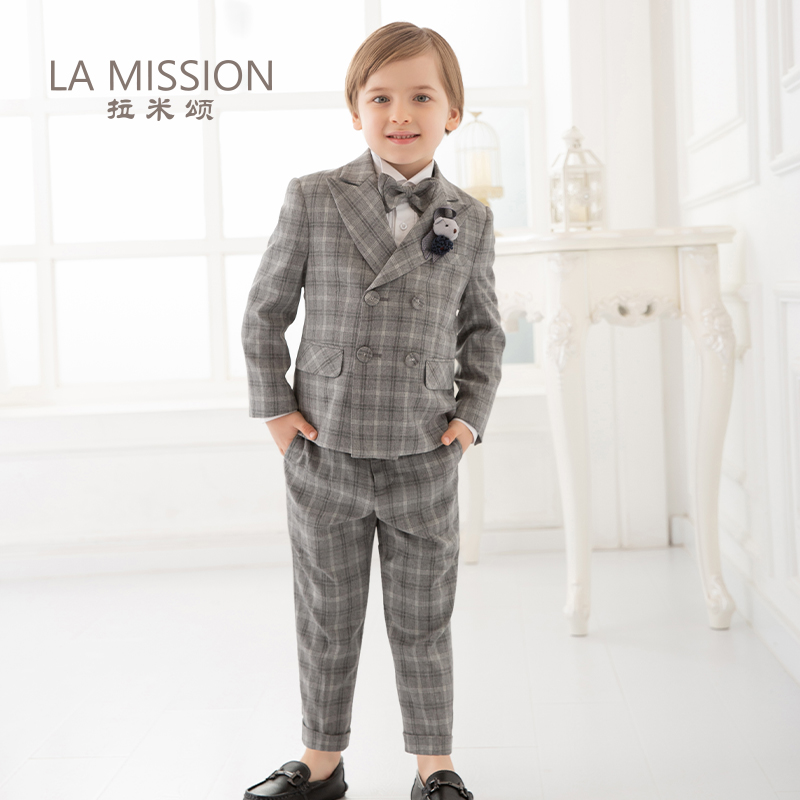 New gray and white plaid boy suit flower girl ceremony dress one-year-old birthday costume hosting piano model performance