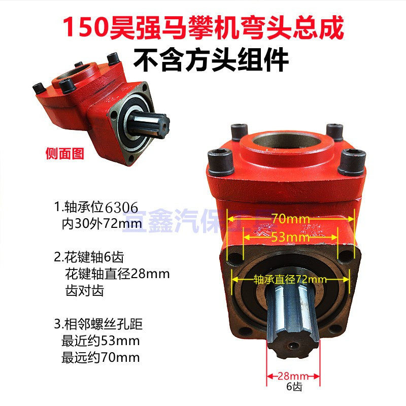 Haoqiang 150 elbow assembly Haoqiang 150 assembly without square head assembly 1 inch square head assembly 6 teeth 40mm 20 to 10 horse climbing machine size gear large tooth spline output shaft 6 teeth