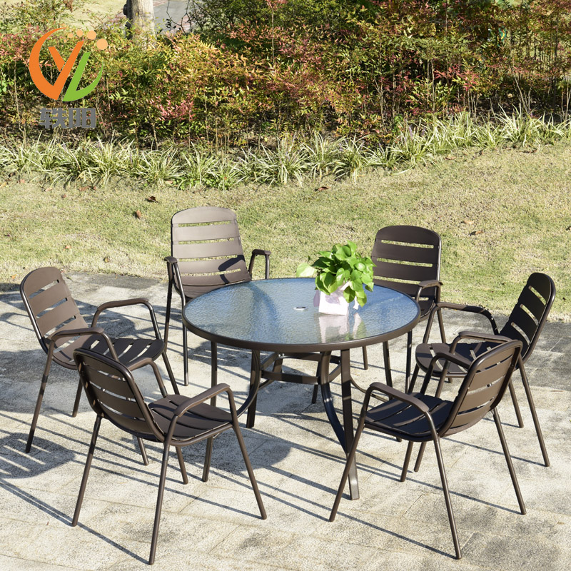 6 chairs 140 COFFEE GLASS LONG TABLE 4 CHAIRS 80 SQUARE TABLE MIDDLE COLUMN IRON UMBRELLA BASE 4 CHAIRS 80 ROUND TABLE DOUBLE TOP MIDDLE COLUMN UMBRELLA BASE 4 CHAIRS 80 WATER TEXTURED GLASS ROUND TABLE
