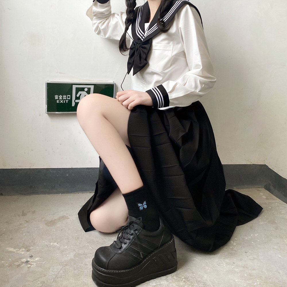 Black Collar Two Ben Long Sleeves Black Bow Tie Black Collar Three Ben Long Sleeves Single Black Bow Tie Black Collar Three Ben Long Sleeves Long Skirt Black Bow Tie Black Collar Three Bene Long Sleeves Black Short Skirt Black Collar Tie Black Collar
