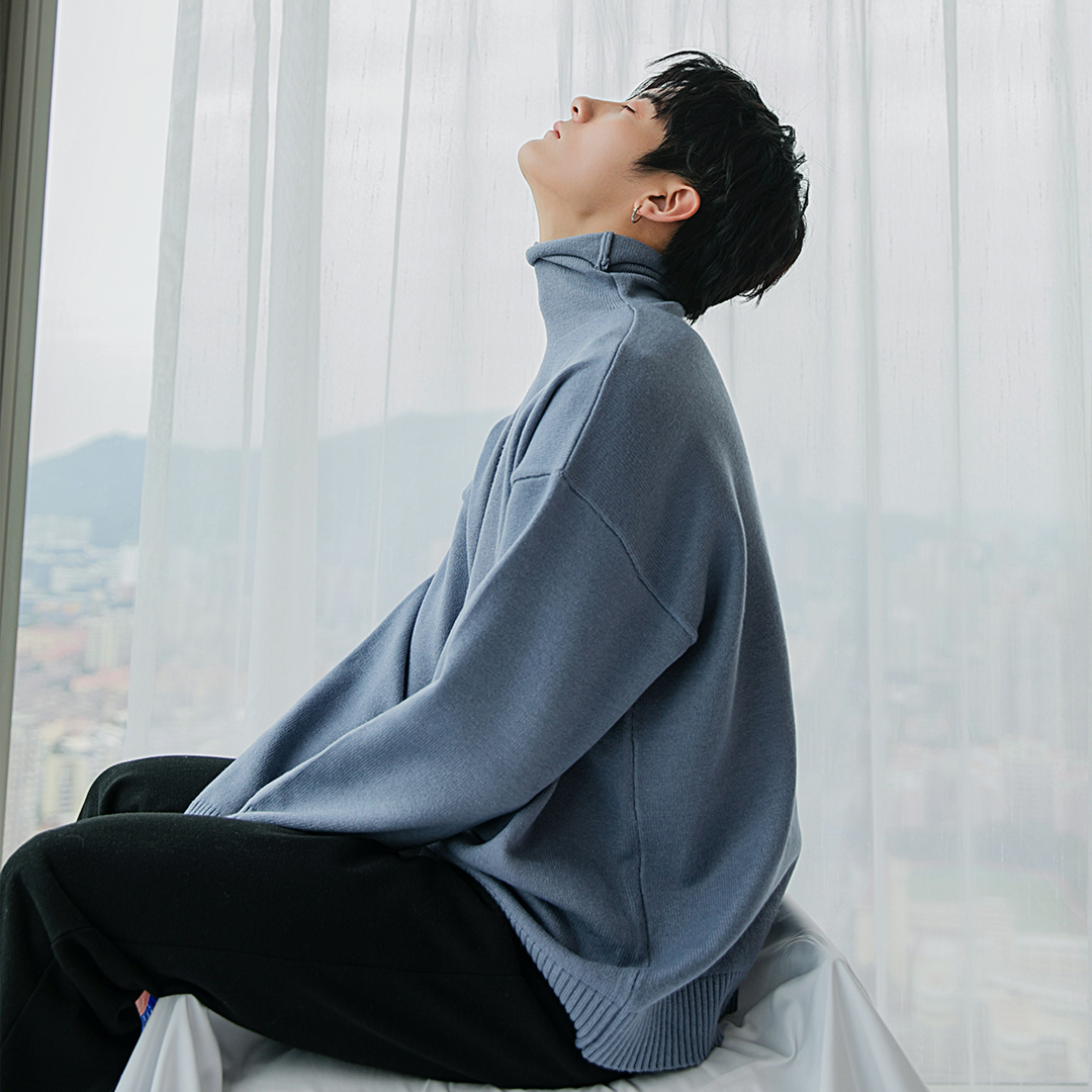 Sicilian men's clothing fall new pure colour long sleeve Korean version trendy cardio-hoodie warm beating bottom high collar men's sweater