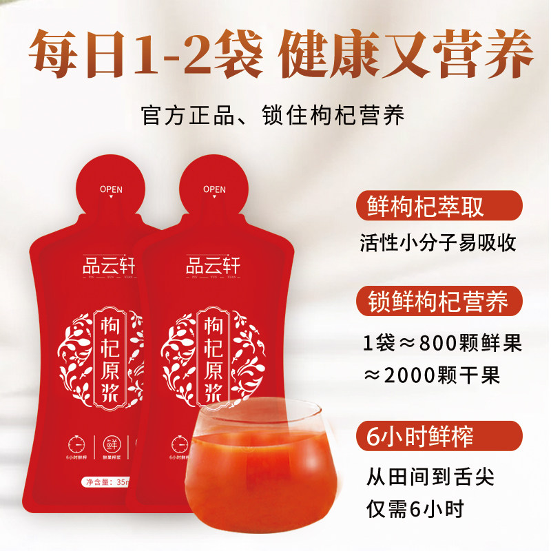Goji Berry Juice Ningxia Fresh Goji Berry Juice Fresh Fruit Gou Berry 35ml * 30 bags of authentic Zhongning Berry Essence