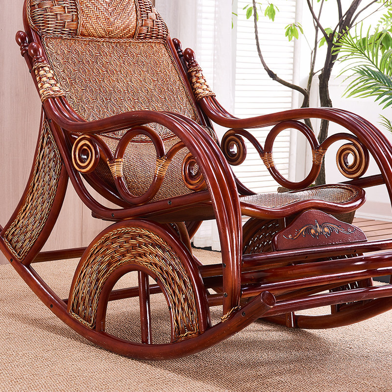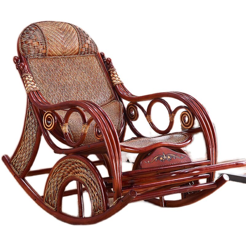 Natural rattan rocking chair recliner adult old man rattan chair lazy home leisure rocking chair balcony nap chair