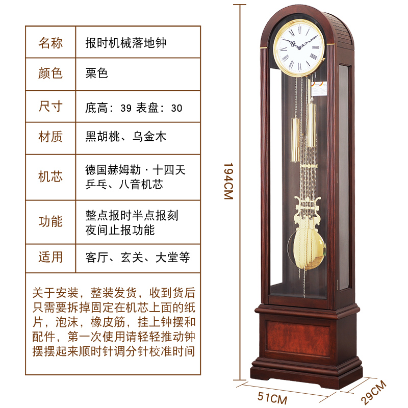 Minimalist mechanical dome landing bell Helmler large seat bell new Chinese style villa with large pendulum clock living room solid wood upright bell-Taobao