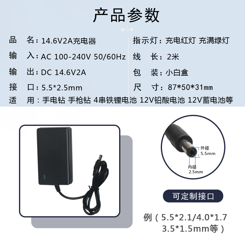 14 6V2A lithium battery pack charger lithium iron phosphate 4 strings 12 8V12V lead-acid battery electric drill