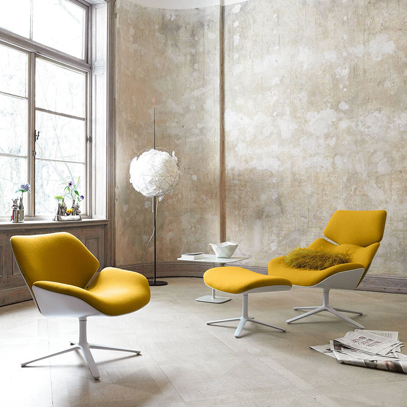 Hua Shijian home modern backrest soft bag leisure chair rotatable shrimp chair solid wood curved plate shell lazy reclining chair