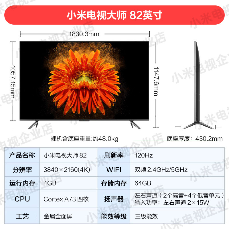 Xiaomi TV Master 82-inch L82M6-4K giant screen HD intelligent network LCD home LCD tablet