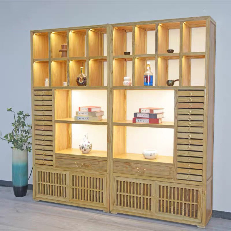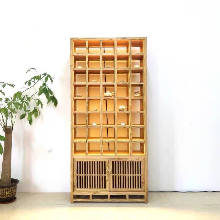 New Chinese style with light purple sand pot storage cabinet tea cup tea set built display cabinet Duobaoge elm teapot Bogu rack