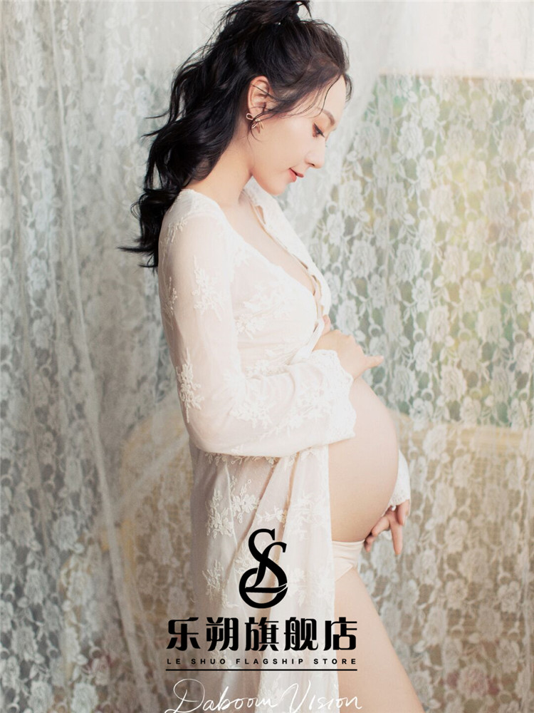 Pregnant women taking pictures of clothing studio pregnancy photography belly photo photo sheer mesh embroidery lace-to-be mommy dress