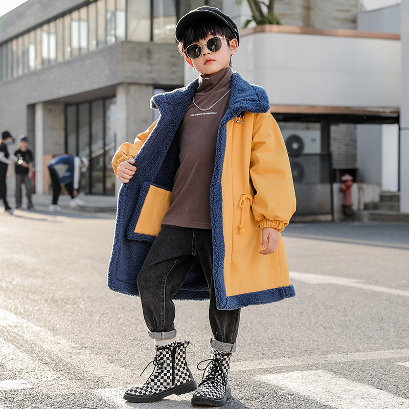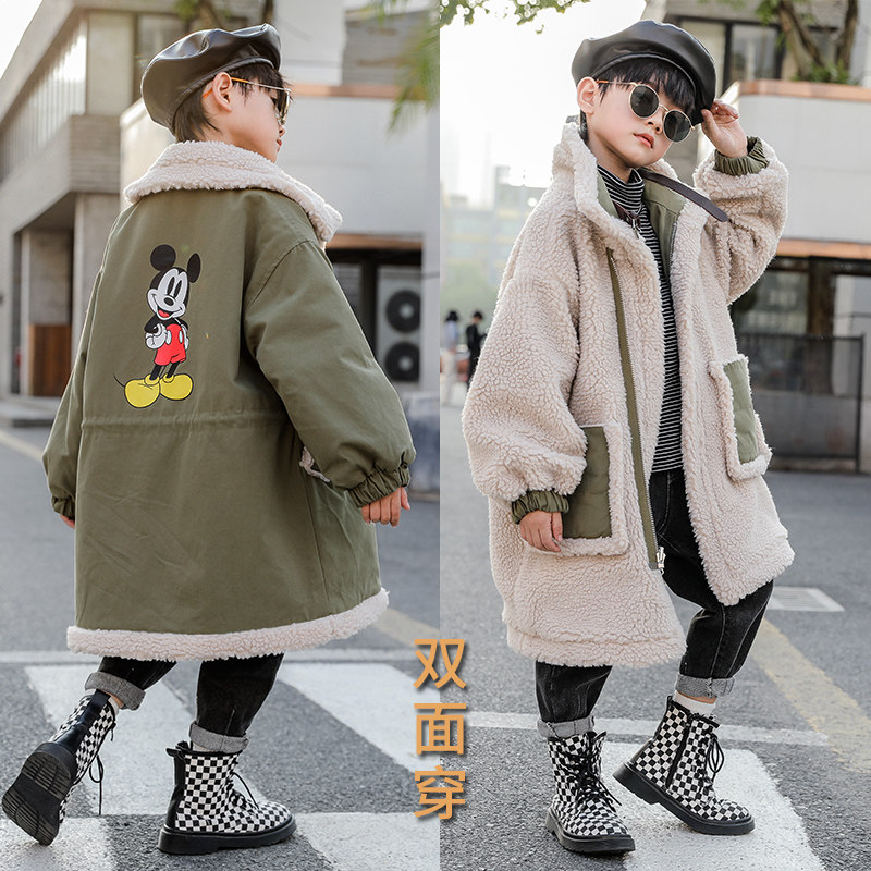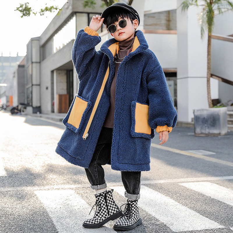 Boys' lamb fleece jacket autumn and winter 2022 new children's winter clothes plus velvet thick wool sweater trendy winter children's clothing
