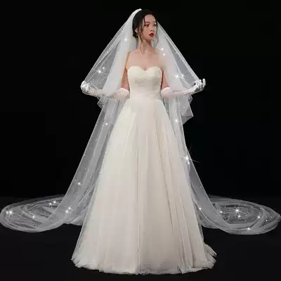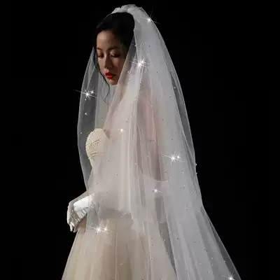 Bride main wedding veil headwear Super Xiansen Net red photo props long version tailing simple pearl veil