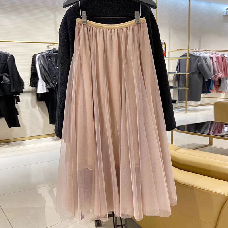 Women's Ama Shi gauze skirt women's skirt spring and autumn 2022 new high-waisted mid-length A-line skirt