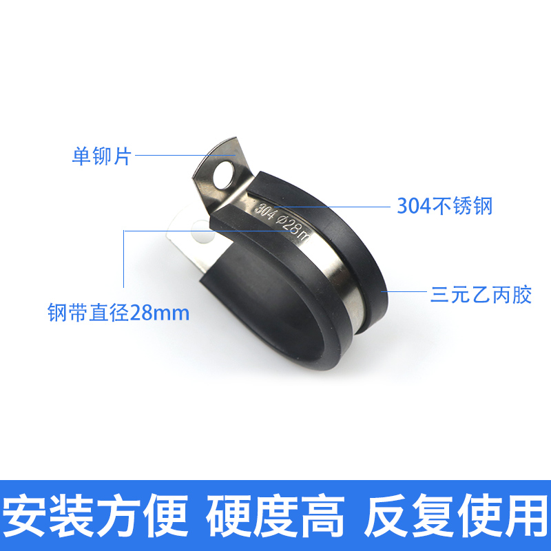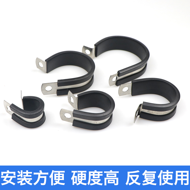 R-type tandem adhesive tape hoop stainless steel throat hoop cable fixing card damping insulation hoop rubber clamping wire nail tube card