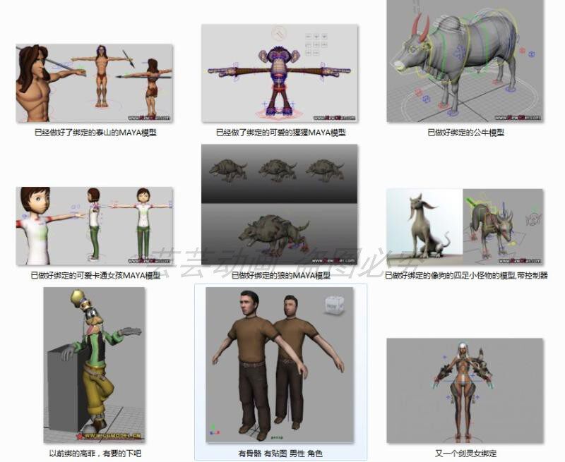 300 maya model Katong human characters four-foot animal robot combined with skeletal binding