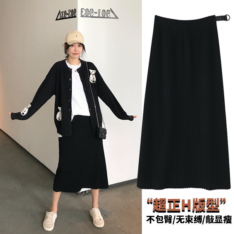 Maternity knit skirt autumn and winter outside wear mid-length loose slim straight tube adjustable black base step skirt