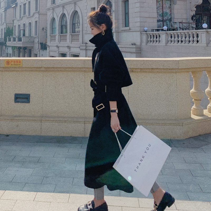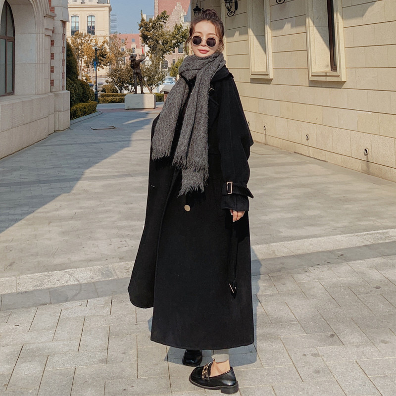 Maternity woolen coat female long version 2022 trendy mom loose temperament black thickened woolen coat Korean winter clothes
