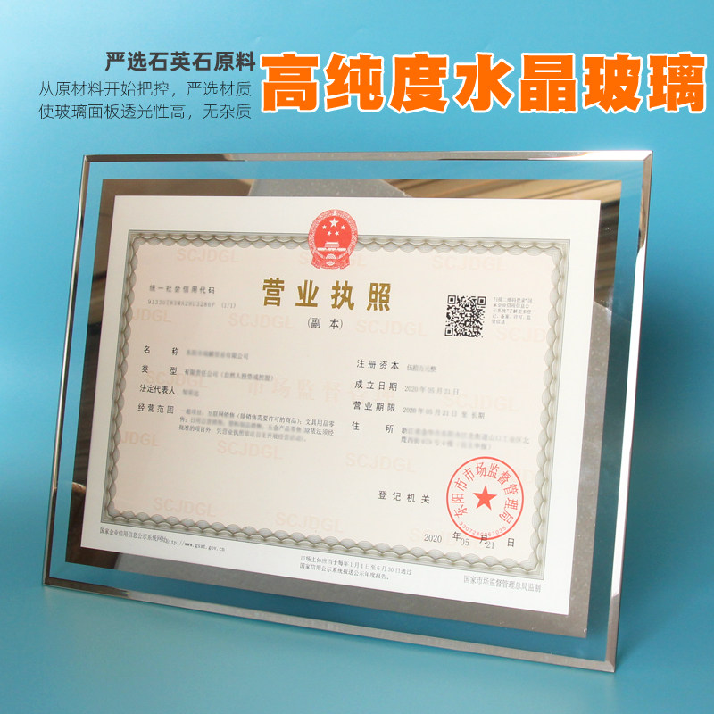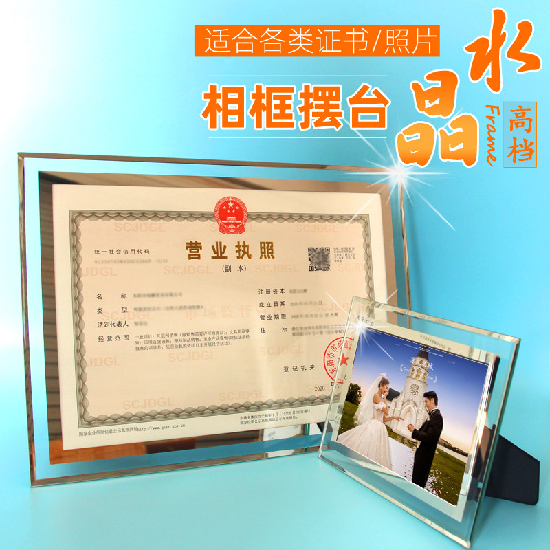 Crystal glass photo frame setting A4A5 award frame certificate frame business license frame 10 inch wall authorization frame A3.