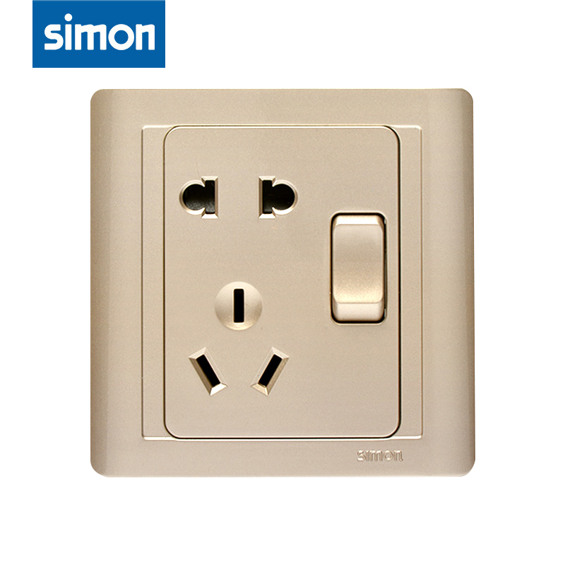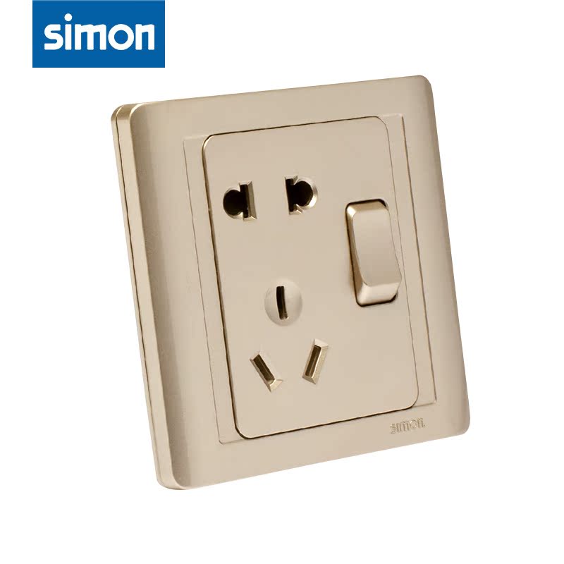 Simon Simon 55 series champagne gold five-hole one-open single-control socket switch socket panel