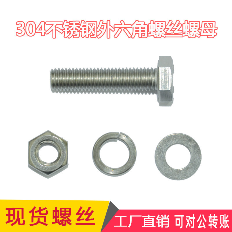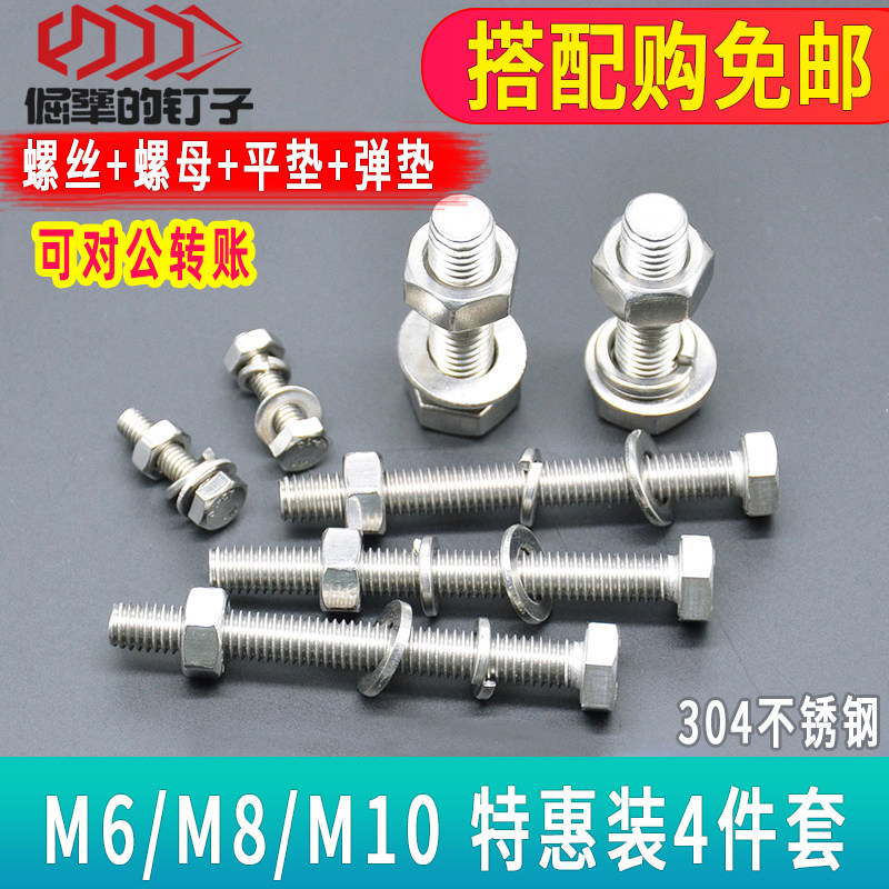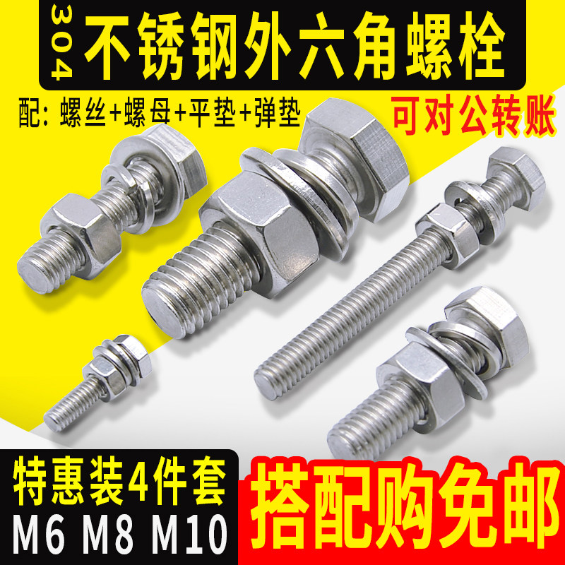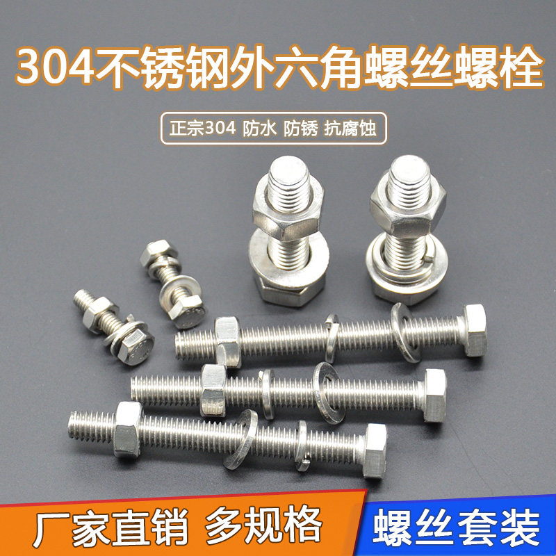 Outer hexagon screw M6M8M10 lengthened 304 stainless steel bolt gong mother spring piece Luo rod set combination large piece