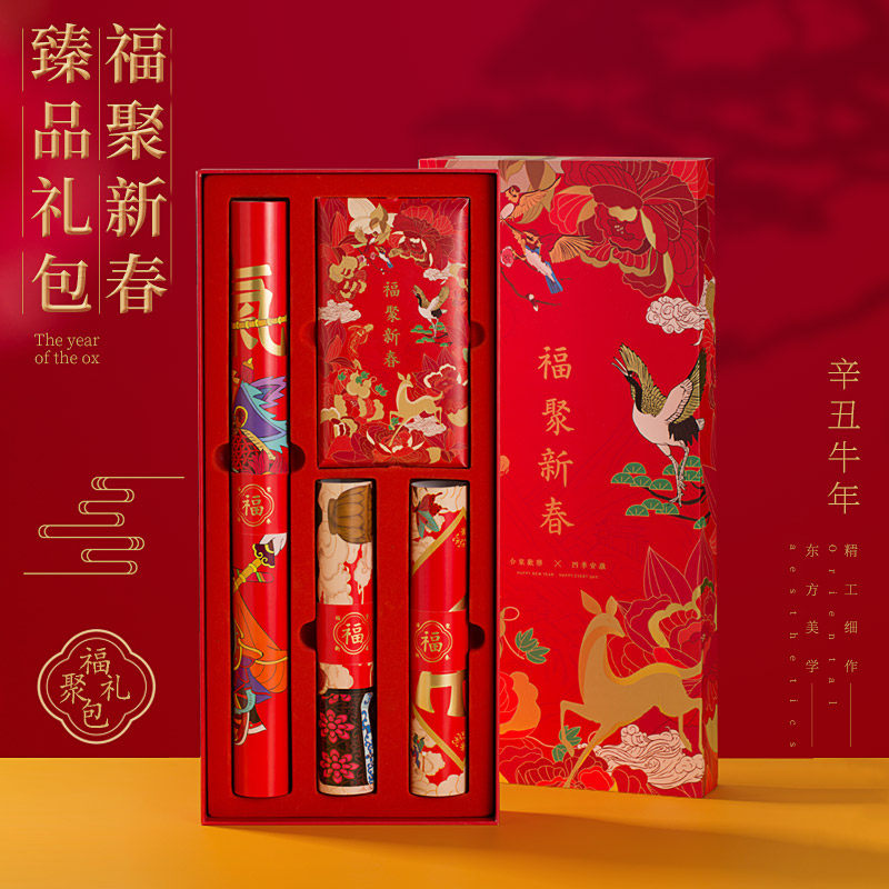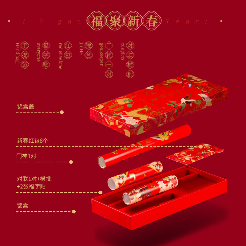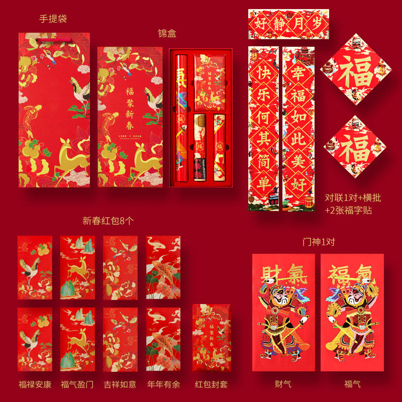 (Qing Qishu) Fuju New Year 2022 Spring Festival gift package original national style illustration couplet custom Spring Festival couplets high-end gift package Tiger Year Fu word door god red envelope spring couplet home