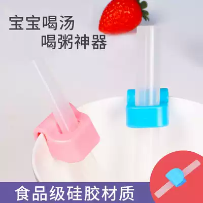 Baby soup straw baby porridge artifact children drink water porridge non-staple food with buckle suction tube bowl soft silicone accessories