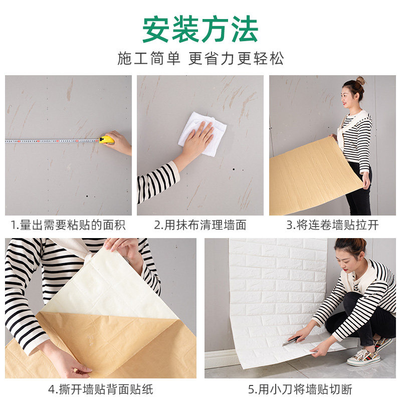 Wallpaper self-adhesive waterproof moisture-proof 3d three-dimensional foam brick wall sticker wallpaper bedroom warm background wall surface net red decoration