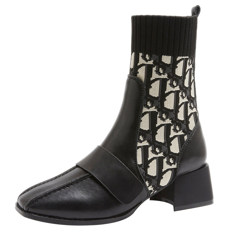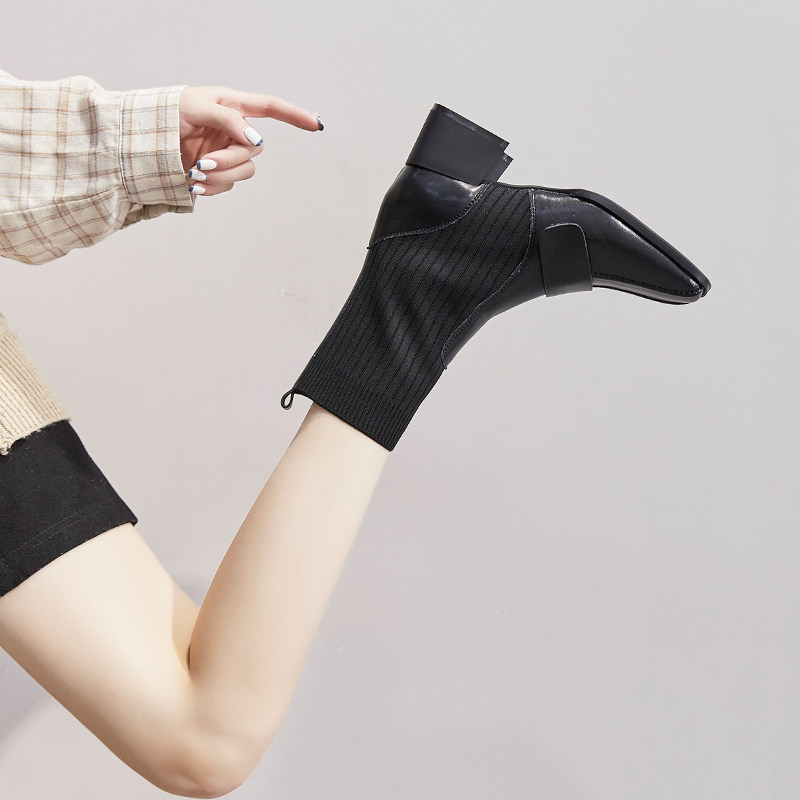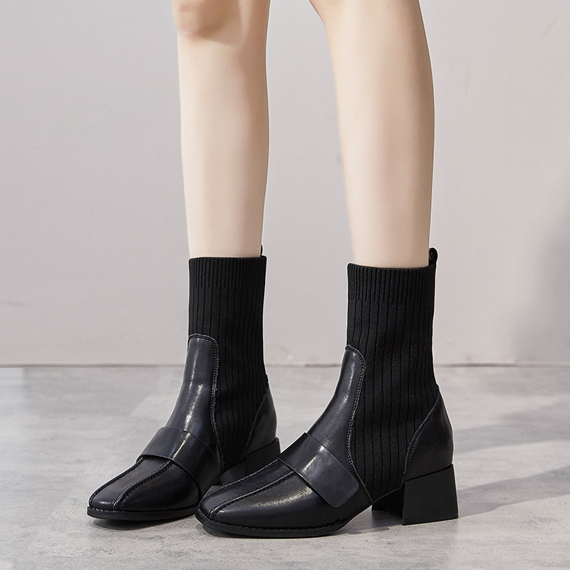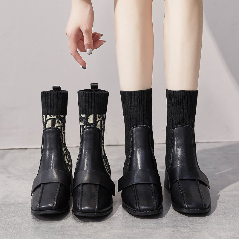 Socks boots women's 2021 autumn and winter new thick heel Martin boots women's British style short boots all-match net red elastic thin boots