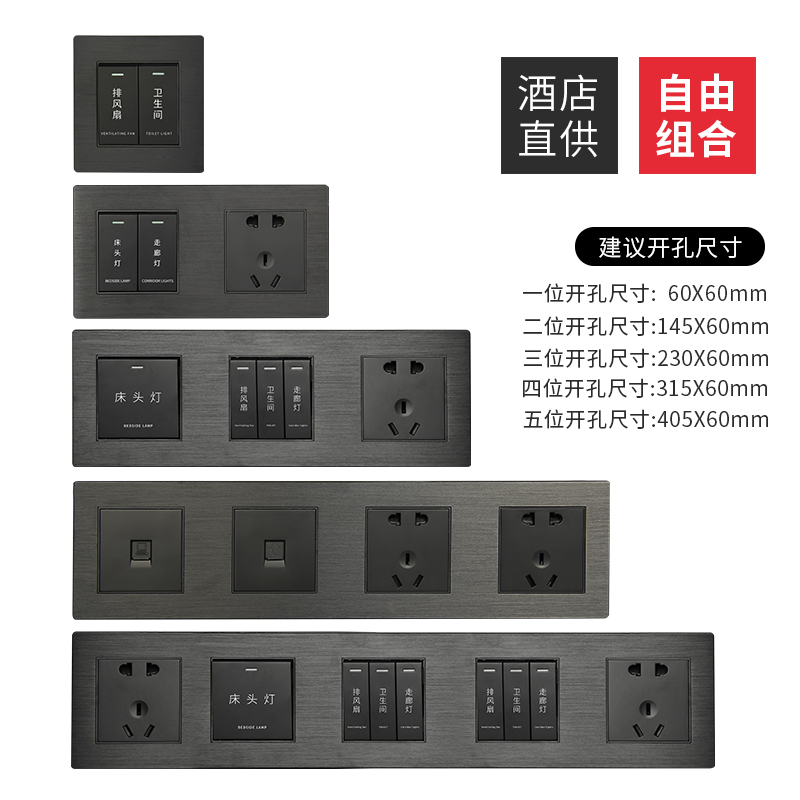 Customized hotel switch panel printed bedside table socket control combination one-piece hotel lettering 86 type rooms
