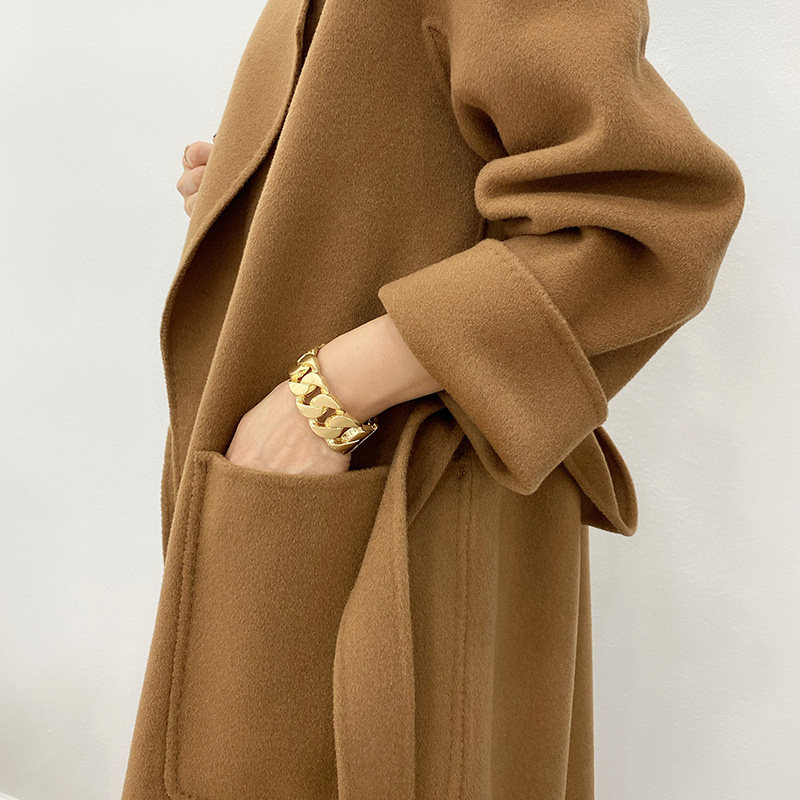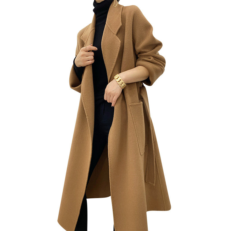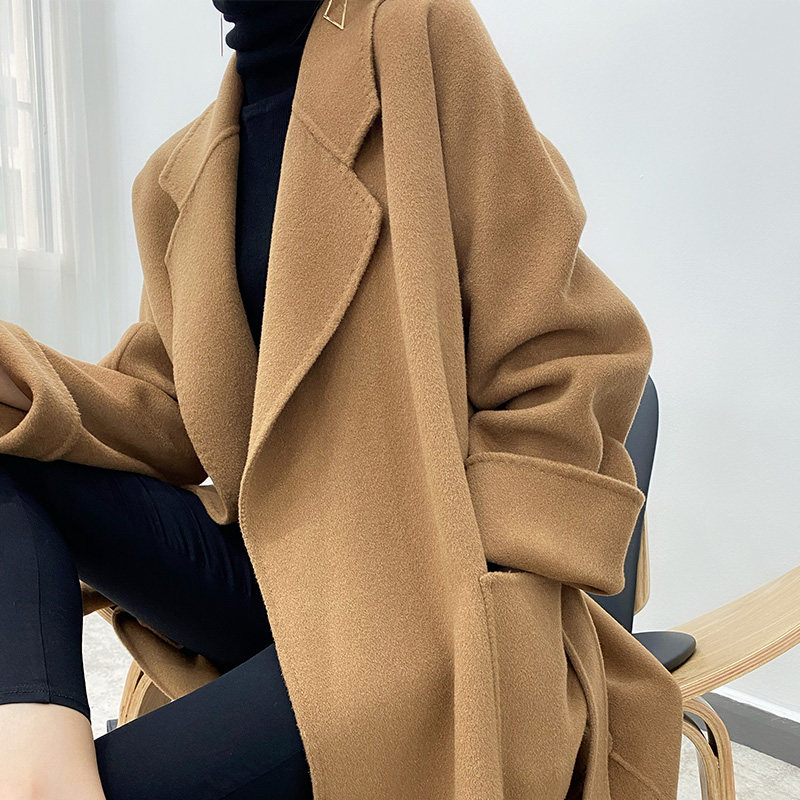 Off-season double-sided cashmere woolen coat women's mid-length version 2022 high-end camel large size autumn and winter 100% woolen coat