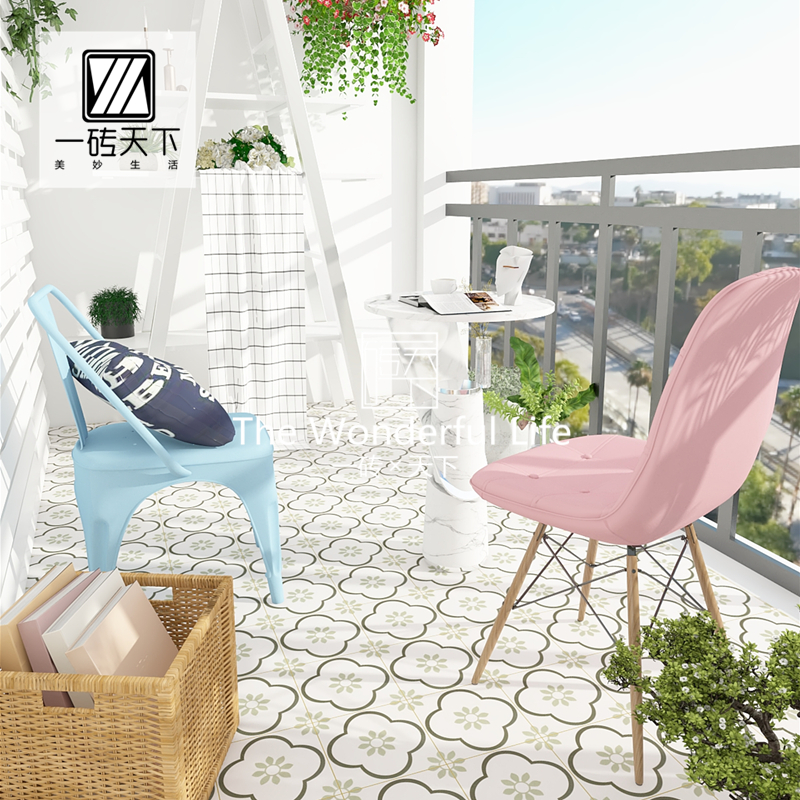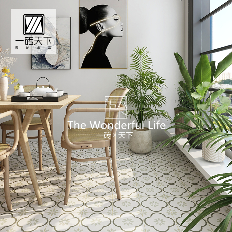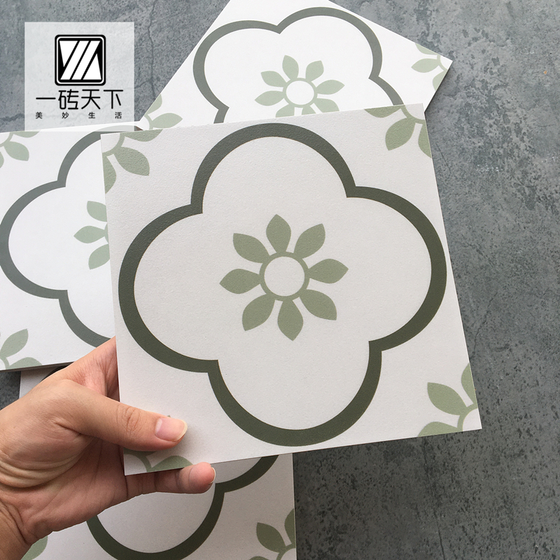 Nordic light green flower pattern tiles Kitchen restaurant balcony floor tiles Bathroom bathroom background wall tiles 200
