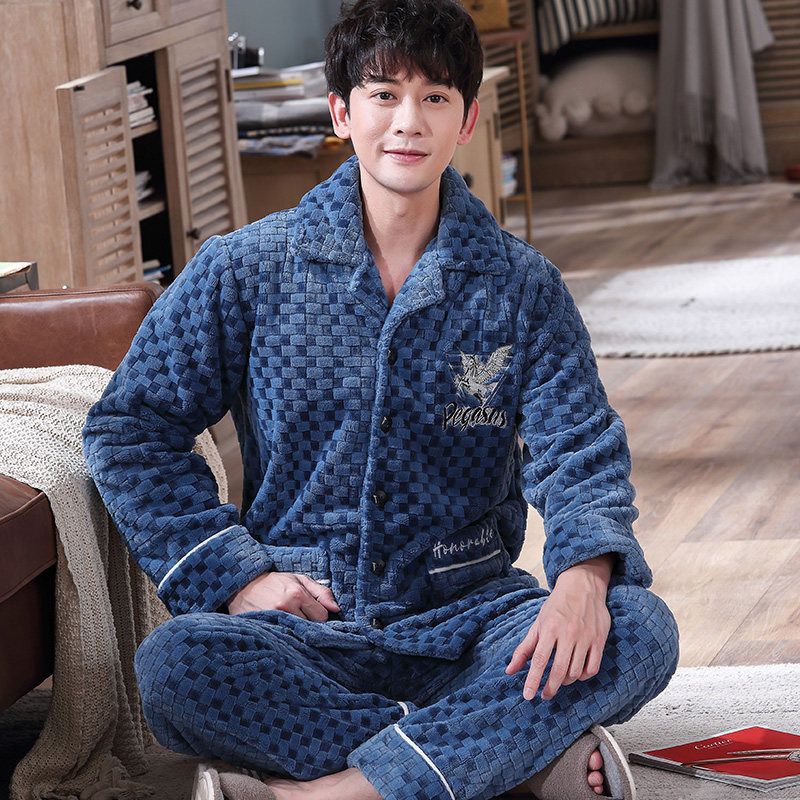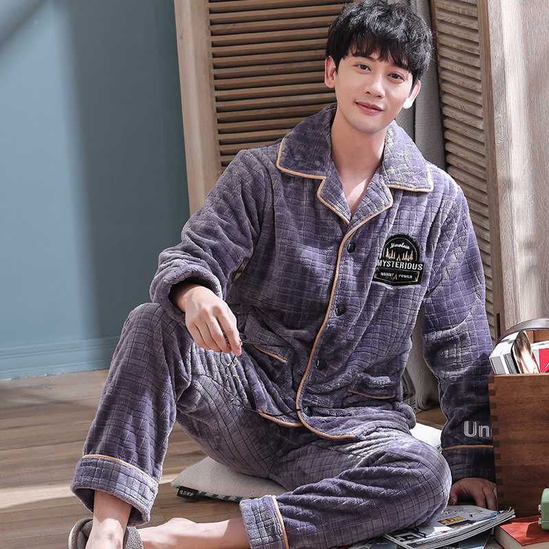 Men's Pajamas Winter Coral Suede Autumn Winter Style Garnter Thickened Warm Youth Large Size Easy Winter Men's Suit
